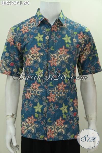 Baju Batik Printing Buat Cowok, Hadir Dengan Desain Motif Bunga-Bunga Berpadu Dasar Hijau Yang Trendy Untuk Tampil Lebih Keren [LD5254P-L]