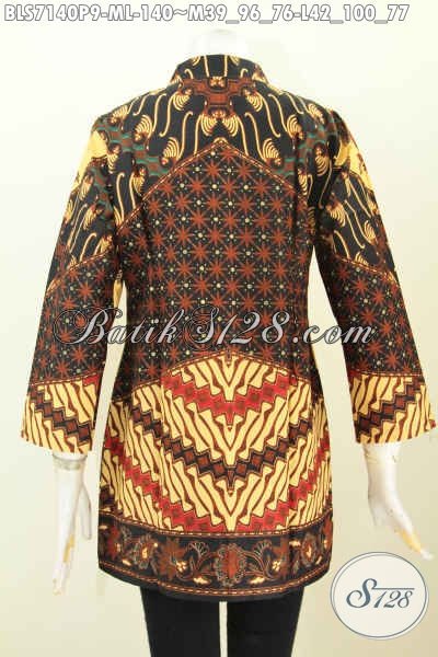 Baju Batik Printing Motif Klasik Buatan Solo Asli, Blus Batik Kerah Shanghai Lengan Panjang, Istimewa Untuk Pakai Wanita Karir Berhijab [BLS7140P-M , L]