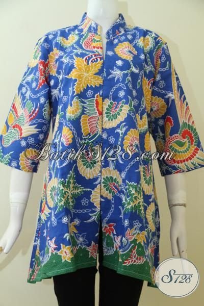 Baju Batik Proses Print Warna Biru Hadir Dengan Desain Keren Terkini, Baju Batik Wanita Muda Tampil Beda Dan Keren [BLS2481P-XL]