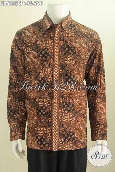 Baju Batik Rapat Lengan Panjang Motif Klasik, Pakaian Kerja Pria Full Furing Proses Cap Tulis Untuk Terlihat Gagah Berkarakter [LP6855CTF-XL]