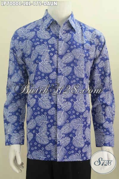 Baju Batik Santai Motif Daun, Kemeja Batik Modern Model Lengan Panjang Buat Pria Terlihat Mempesona, Bahan Halus Proses Cap Harga 175K [LP7000C-XL]