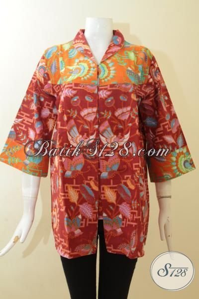 Baju Batik Seragam Kerja Model Paling Trendy, Blus Batik Wanita Berbahan Halus Motif Modern Pas Juga Untuk Ke Pesta [BLS2972P-XL , XXL]