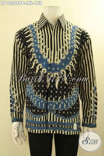 Baju Batik Seragam Kerja Pria Model Lengan Panjang Motif Mewah Jenis Print Cabut, Pakaian Batik Murah Kwalitas Mewah [LP12368PB-XL]