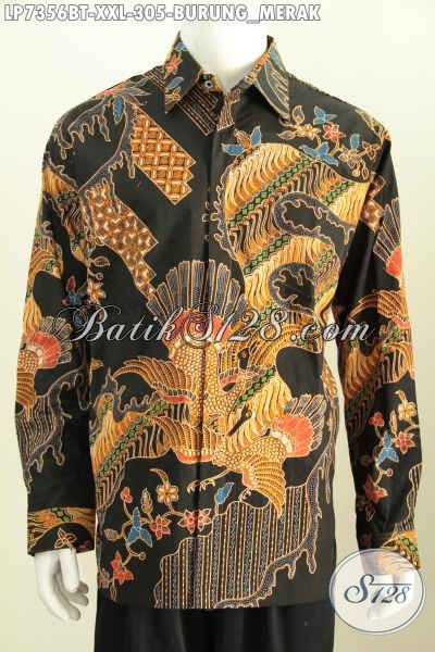 Baju Batik Solo Halus Lengan Panjang Motif Burung Merah, Produk Hem Batik Kombinasi Tulis Kwalitas Mewah Harga Terjangkau [LP7356BT-XXL]