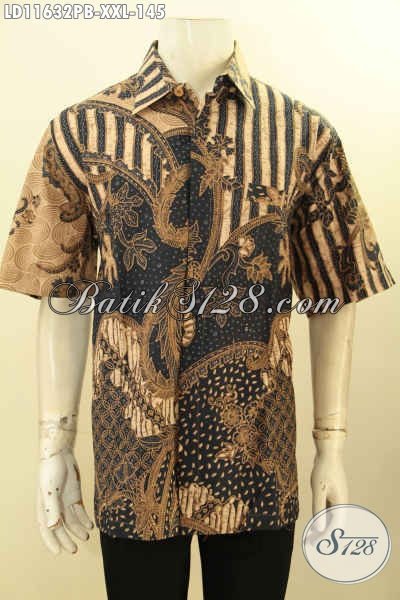 Baju Batik Solo Halus, Model Kemeja Batik Pria Kerja Untuk Penampilan Modis Dan Berkelas, Bahan Halus Motif Trendy Warna Elegan Proses Printing Cabut Hanya 145 Ribu [LD11632PB-XXL]