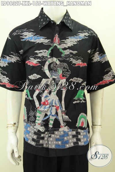Baju Batik Solo Istimewa, Pakaian Batik Lengan Pendek Berkelas Ukuran Jumbo Motif Wayang Hanoman, Cocok Untuk Kerja Dan Hangout Pria Badan Gemuk [LD9632T-XXL]