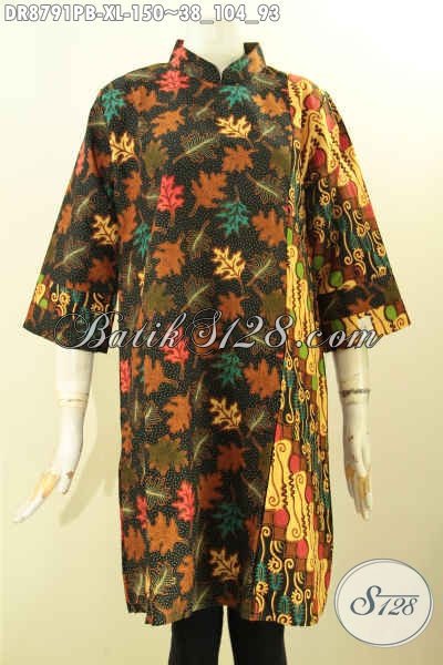 Baju Batik Solo Jawa Tengah Nan ELegan Dan Mewah, Batik Dress Kerah Shanghai Lengan 7/8 Resleting Belakang Bahan Halus Hanya 100 Ribuan Saja [DR8791PB-XL]