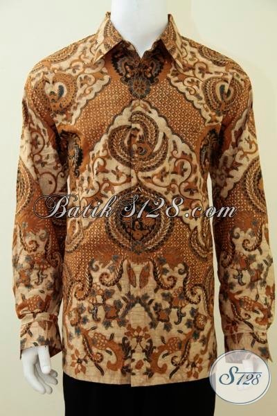 Baju Batik Solo Klasik Model Lengan Panjang Untuk Pria Muda Dan Dewasa, Hem Batik Tulis Full Furing Tampil Keren Berkelas [LP2671BTF-XXL]