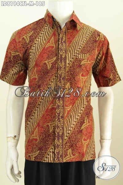 Baju Batik Solo Lengan Pendek, Hem Batik Halus Kwalitas Bagus Proses Cap Tulis Lasem Yang Bikin Penampilan Lebih Ganteng Maksimal [LD8194CTL-M]