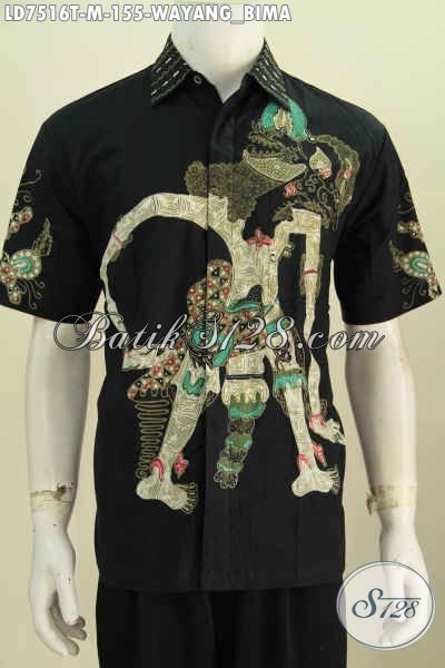 Baju Batik Solo Lengan Pendek Proses Tulis, Hem Batik Keren Motif Wayang Bima Untuk Pria Terlihat Gagah Dan Tampan [LD7516T-M]