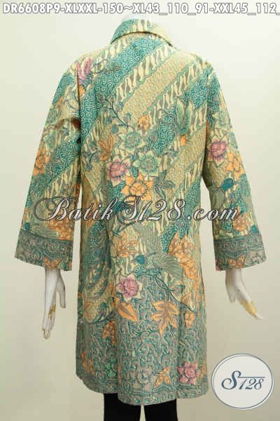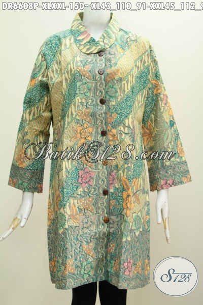 Baju Batik Solo Spesial Untuk Wanita Karir Masa Kini, Busana Batik Dress Kerah Miring Motif Mewah Proses Printing Harga 150 Ribu Saja [DR6608P-XL , XXL]