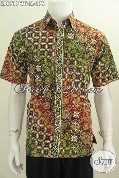 Baju Batik Solo Trend Motif 2016, Busana Batik Pria Muda Ukuran M Model Lengan Pendek Motif Bagus Proses Cap Tulis Soga [LD6713CTG-M]
