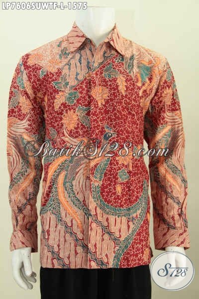 Baju Batik Super Mewah Lengan Panjang Harga Mahal, Berbahan Sutra Twis Lengan Panjang Pake Furing Pria Tampil Makin Berwibawa [LP7606SUWTF-L]