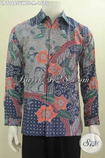 Baju Batik Super Premium Bahan Halus Tulis Tangan Motif Terkini, Batik Sutra Twis Buatan Solo Model Lengan Panjang Pake Furing [LP7066SUWTF-M]
