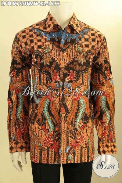 Baju Batik Sutra Pria Dewasa, Kemeja Batik Lengan Panjang Solo Halus Full Furing Motif Klasik Proses Tulis Tangan Asli, Memuat Penampilan Lebih Mewah Dan Berkelas [LP10975SUWTF-XL]