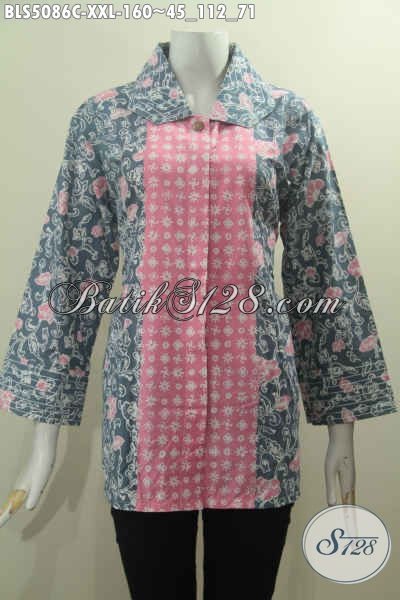 Baju Batik Terbaru 2016 Yang Banayk Di Sukai Wanita Karir, Berbahan Halus Motif Kombinasi, Busana Batik Proses Cap Kerah Benang Besar Untuk Wanita Gemuk Tampil Menawan [BLS5086C-XXL]