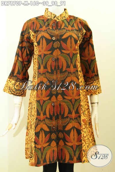 Baju Batik Terusan Elegan, Dress Batik Dual Motif Desain Kerah Shanghai Bahan Halus Motif Mewah Printing 160K [DR7870P-M]