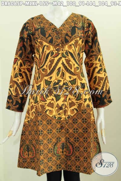 Baju Batik Tiga Motif, Dress Batik Keren Desain Berkelas Proses Printing Di Jual Online 155K Untuk Penampilan Lebih Istimewa [DR6065P-M , L , XL]