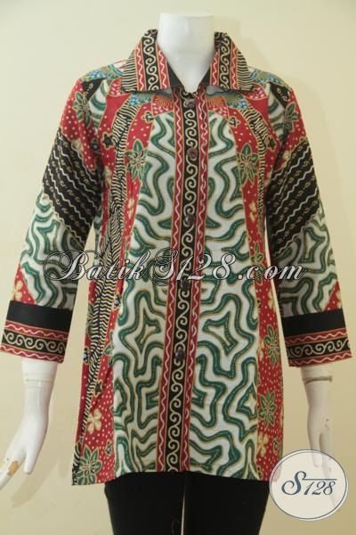 Baju Batik Tiga Motif Kwalitas Bagus, Busana Batik Printing Desain Istimewa Khas Wanita Modern, Di Jual Online Murmer [BLS3493P-L]