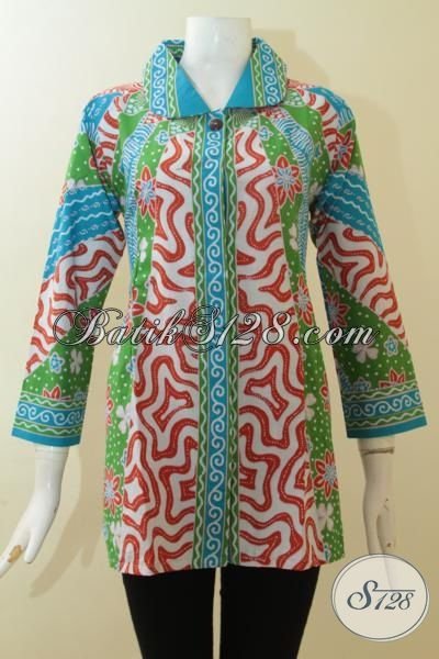 Baju Batik Tiga Warna Trend Paling Baru, Blus Batik Print Halus Harga Murah, Pakaian Batik Untuk Kerja Dan Pesta Desain Paling Berkelas [BLS2956P-L]