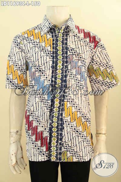Baju Batik Trendy Dengan Kombinasi Warna Yang Atraktif Berpadu Motif Klasik Proses Cap, Busana Batik Pria Lengan Pendek, Tampil Kere Dan Stylish [LD11693-L]