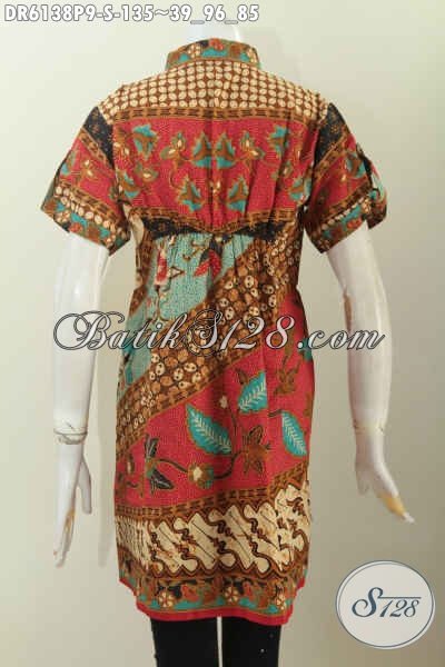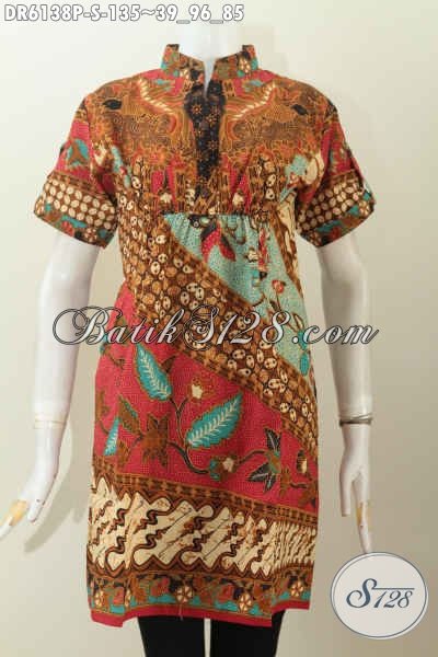 Baju Batik Trendy, Dress Batik Lengan Pendek Motif Klasik Kerah Shanghai Pake Karet Depan Belakang, Tampil Modis Dan Cantik [DR6138P-S]