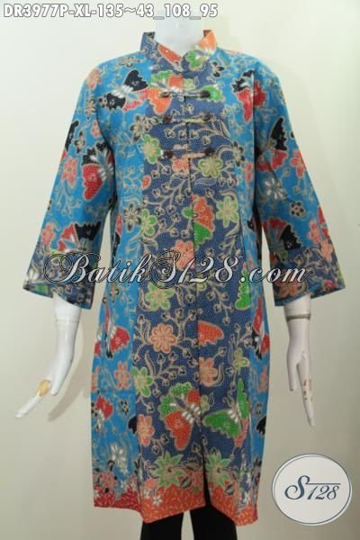 Baju Batik Trendy Harga Terjangkau, Busana Batik Model Dress Kerah Shanghai Dual Motif Istimewa Untuk Tampil Makin Stylish [DR3977P-XL]