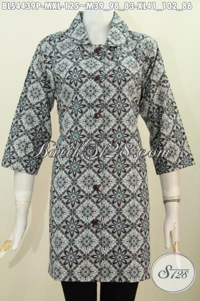 Baju Batik Trendy Model Kerah Bulat Warna Baru Modis Banget, Busana Batik Wanita Karir Proses Printing Tampil Mewah Dengan Harga Murah Meriah [BLS4439P-M , XL]