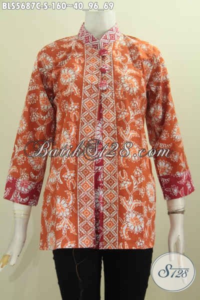Baju Batik Trendy Modfel Pias, Blus Batik Solo Halus Motif Keren Proses Cap Dengan Kancing Model Besar Trend Mode 2017 [BLS5687C-S]