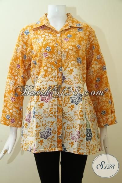 Baju Batik Trendy Warna Kuning Motif Paling Keren, Baju Batik Blus Lengan Tujuh Perdelapan Proses Cap Berbahan Halus Dan Adem [BLS2603C-S]