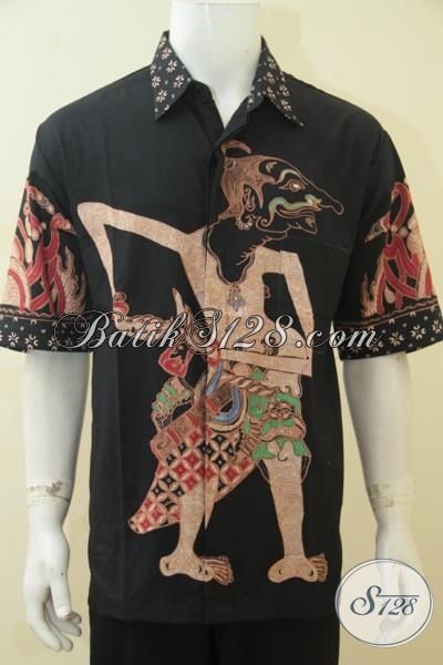 Baju Batik Tulis Cowok Ukuran Jumbo, Hem Batik Lengan Pendek Motif Wayang Petruk Punakawan Warna Hitam Elegan, Cocok Untuk Pria Berbadan Gemuk Terlihat Gagah Dan Keren [LD4409T-XXL]