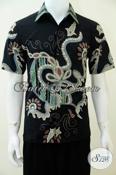 Baju Batik Tulis Dasar Hitam Berkesan Mewah Dan Elegan, Kemeja Batik Lengan Pendek Motif Klasik Pria Tampil Berwibawa [LD2439T-S]