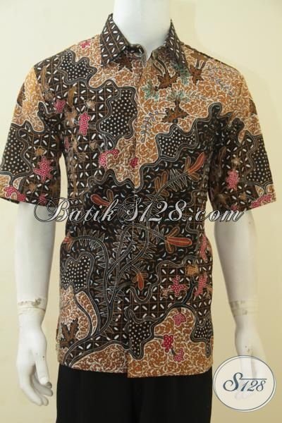Baju Batik Tulis Halus Buatan Solo, Hem Batik Lengan Pendek Full Furing Mewah Tampil Modis, Pakaian Batik Klasik Untuk Acara Formal Di Jual Online [LD4346TF-L]