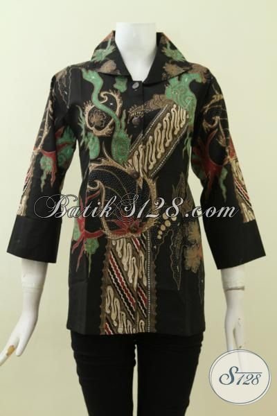 Baju Batik Tulis Keren Motif Klasik Dasar Hitam Cewek Tampil Elegan, Busana Batik Seragam Kerja Mewah Harga Murah [BLS2717T-M]