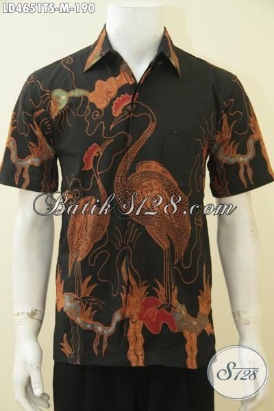 Baju Batik Tulis Pewarna Soga, Hem Batik Lengan Pendek Dasar Hitam Elegan Motif Keren Cocok Untuk Acara Santai [LD4651TS-M]