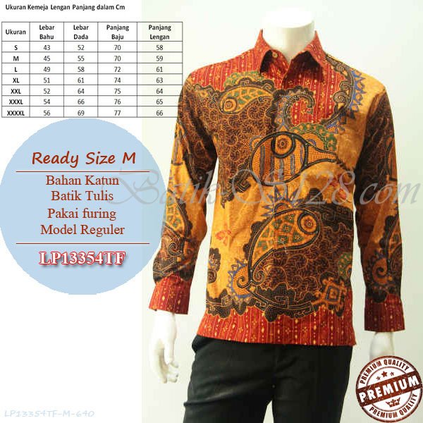 Baju batik tulis laki-laki lengan panjang dibuat dari bahan katun primisima pilihan dan diproses dengan teknik batik tulis asli yaitu dilakukan dengan cara manual menggunakan canting dan lilin (malam).