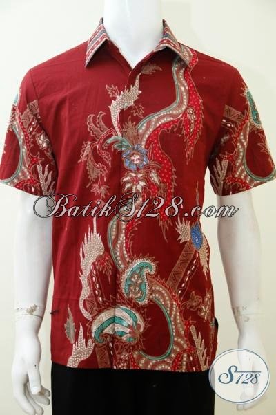 Baju Batik Tulis Warna Merah Dengan Motif Paling Baru Saat Ini, Busana Batik Lengan Pendek Bisa Tampil Mewah Dengan Harga Terjangkau [LD2966T-M]
