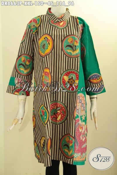 Baju Batik Tunik Dress Keren Dengan Lengan 7/8 Kerah Shanghai, Busana Batik Modis Motif Terkini Di Lengkapi Resleting Dan Kantong Dalam, Bikin Penampilan Lebih Menawan [DR8663P-XXL]