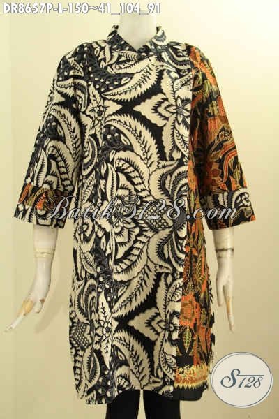 Baju Batik Tunik Dress Modis Dan Keren, Hadir Dengan Motif Bagus Desain Kerah Shanghai Lengan 7/8 Di Lengkapi Saku Dalam Dan Resleting Belakang Hanya 150K [DR8657P-L]
