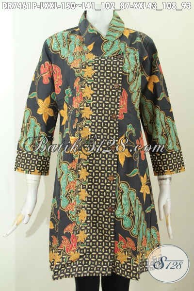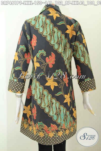 Baju Batik Untuk Kerja, Dress Batik Solo Modis, Busana Batik Kwalitas Istimewa Untuk Penampilan Lebih Sempurna Harga 150 Ribu Saja [DR7461P-L , XXL]