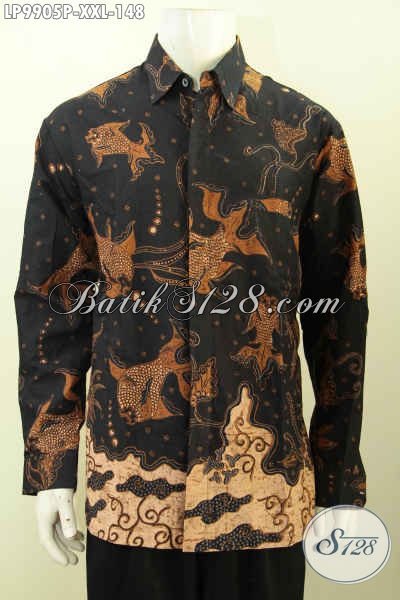 Baju Batik Untuk Pria Gemuk, Kemeja Batik Elegan Mewah Model Lengan Panjang Proses Printing Hanya 148 Ribu [LP9905P-XXL]