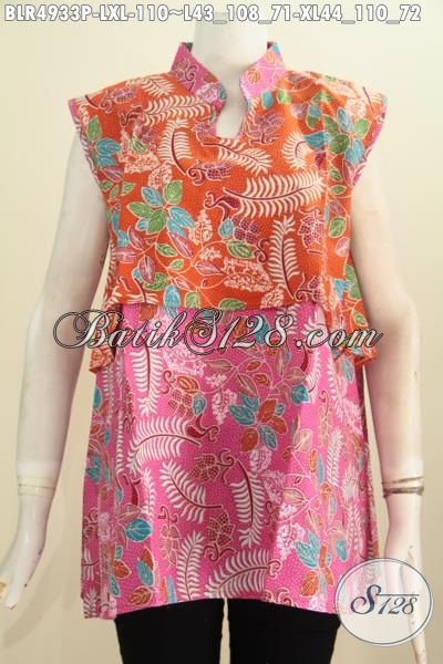 Baju Batik Vest Balero Kombinasi Warna Orange Dan Pink, Pakaian Batik Keren Buatan Solo Penunjang Penampilan Lebih Gaya Serta Mempesona [BLR4933P-XL]