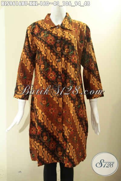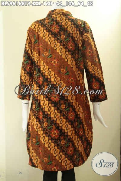 Baju Batik Wanita Atasan Model Krah Motif Elegan Jenis Kombinasi Tulis, Busana Batik Acara Resmi Dan Kondangan Kancing Depan Lengan 7/8, Penampilan Makin Berkelas [BLS9616BT-XXL]