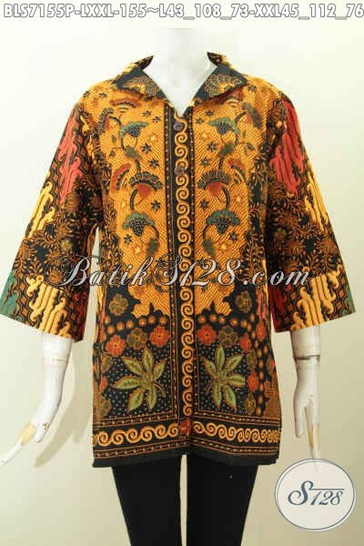 Baju Batik Wanita Berkerah, Blus Batik Seragam Kerja Pakai Saku Kanan Kiri Bahan Adem Motif Bagus Proses Printing Harga 155K [BLS7155P-L]
