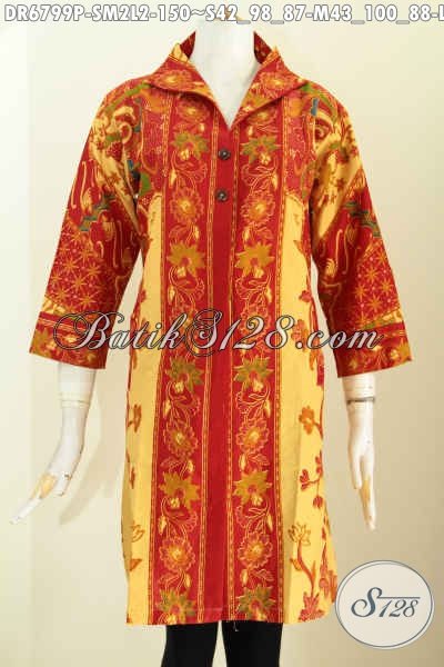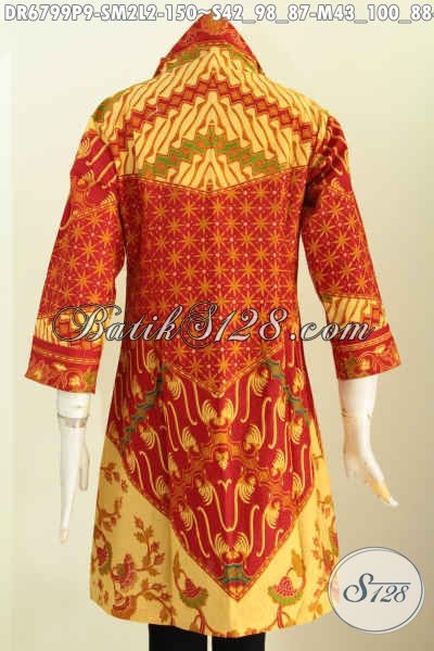 Baju Batik Wanita Buat Kerja, Dress Batik Berkelas Model Kerah V Motif Klasik Sinaran Proses Printing Di Jual Online 150 Ribu Saja [DR6799P-M]