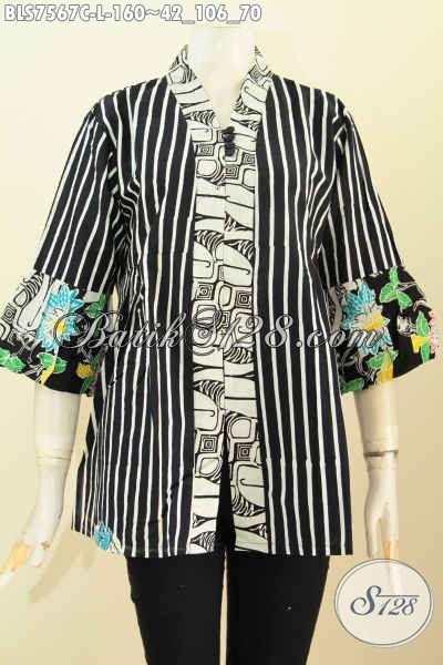 Baju Batik Wanita Casual, Batik Blus Kenzi Kancing Banyak Trend Mode Busana Kerja 2017 Kwalitas Bagus Bikin Penampilan Lebih Cantik [BLS7567C-L]