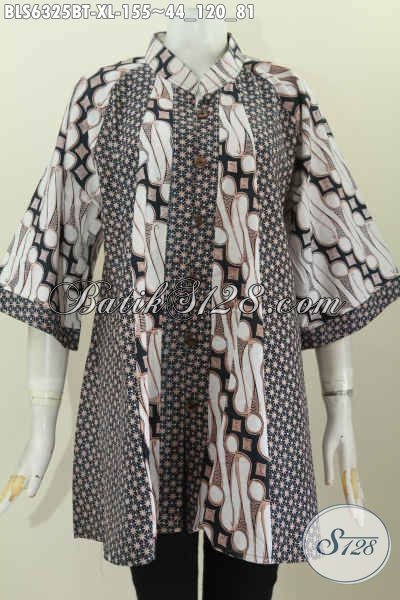 Baju Batik Wanita Dewasa, Blus Batik Klasik Istimewa Bahan Adem Model Kerah Shanghai Cocok Baut Ke Kantor [BLS6325BT-XL]