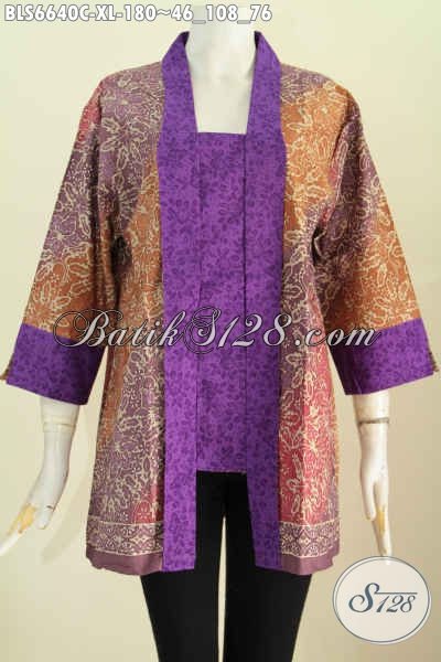 Baju Batik Wanita Dewasa, Blus Batik Kutu Baru Motif Klasik Paduan Kain Polos Ungu, Baju Batik Solo Proses Cap Hanya 180 Ribu [BLS6640C-XL]