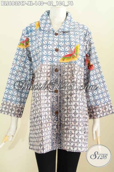 Baju Batik Wanita Dewasa, Blus Batik Modis 2 Warna, Pakaian Batik Wanita Sekarang Pake Kerah Bulat Tampil Bergaya [BLS6835CP-XL]