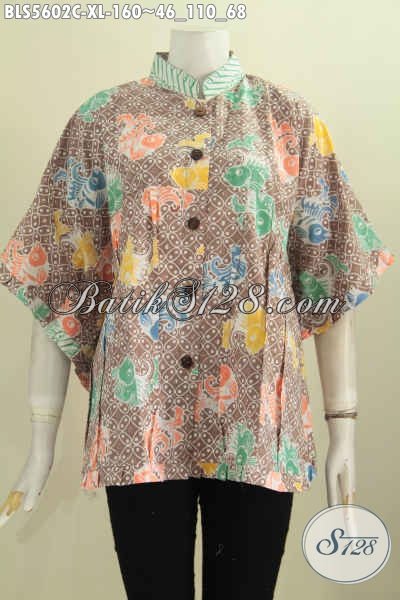 Baju Batik Wanita Dewasa, Blus Batik Perempuan 30 Tahunan Bahan Halus Model Kerah Shanghai Motif Proses Cap Harga 160 Ribu [BLS5602C-XL]